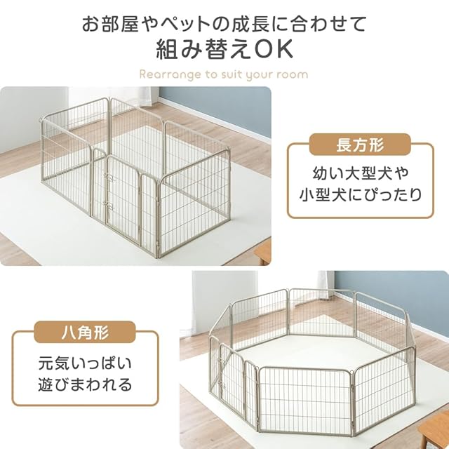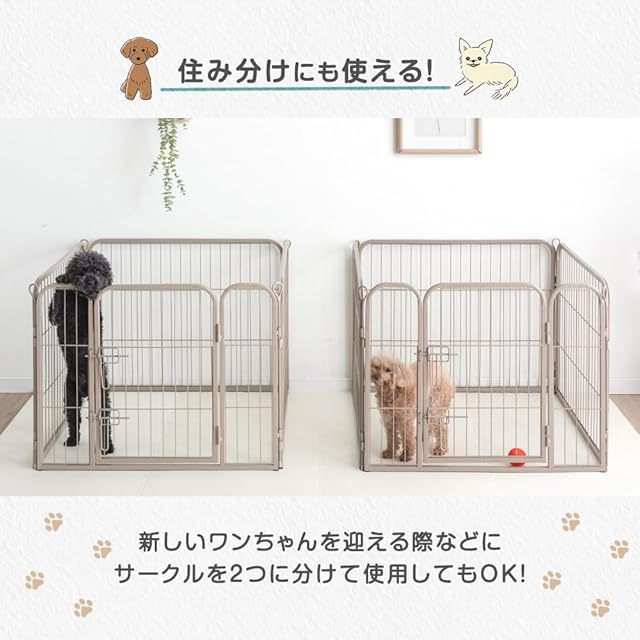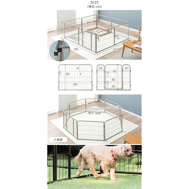 【備考】※曲線部や若干の個体差、組立などにより表記と多少の差異が生じる場合がございます。予めご了承ください。 ※商品は、モニターによって色合いが異なって見える場合があります。 ※フェンス幅は4cm/5cmです。超小型犬や、パピー期の場合 事前に愛犬のサイズをご確認の上ご注文いただくようお願いいたします。 ※床の素材によってはゴム製の滑り止めが効きにくい場合がございます。