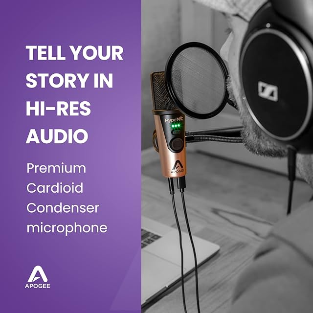 Apogee USBマイク iOS/Mac/Windows対応 24bit/96kHz アナログコンプレッサー内蔵 HypeMic ヘッドホン接続可 web会議 スタンド付き