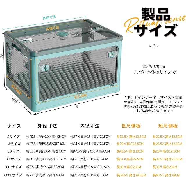 商品名:X XUNTAO【収納ボックス 折りたたみ】蓋付き 積み重ね 全方向から取り出せる 収納ケース 衣類 布団 小物 収納 折り畳み コンテナ ボックス 大型 プラスチック キャスター付き おしゃれ 組立簡単 防塵 防カビ 防湿 無臭 半透明 厚み 強い耐荷重 大容量 家庭用 車用 複数のサイズ 各種カラー(XL,60cm*42cm*33.5cm,84.4L)
