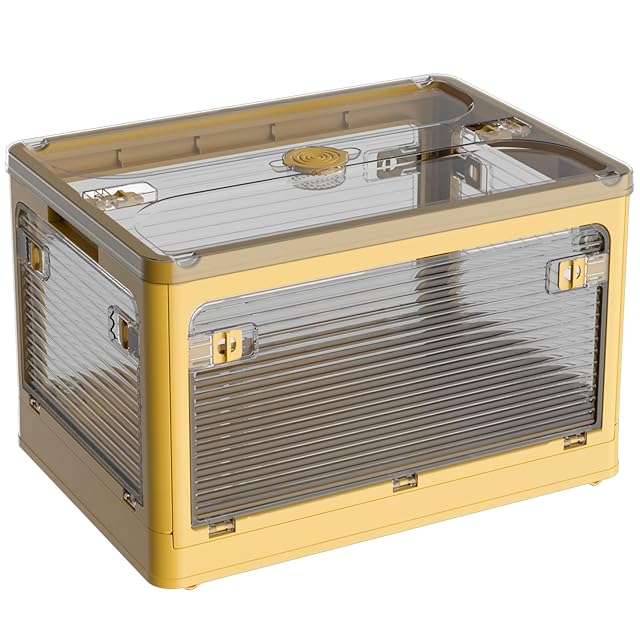 【折り畳み▪上に蓋/側面扉付き】収納箱界の大革新!使わない時に折りたたんで収納できます。スペースを取りません。側面四面も扉付き、収納にとても便利です。上にふた付き、物を入れやすい。蓋をロックできます。物を取るは側面扉から、ボックスを積み重ねる状態にも楽に物を取り出して、伝統的な収納ボックスに比べてもっと便利で、機能性が向上します。