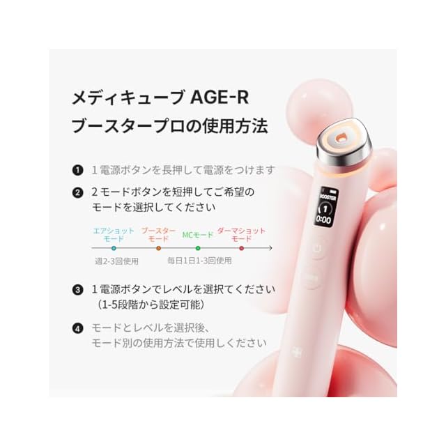 メディキューブ AGE-Rブースタープロ ピンク 1日5分韓国美肌体験 日本語取扱説明書 オールインワン美顔器 持ち運び便利 155g プレゼント