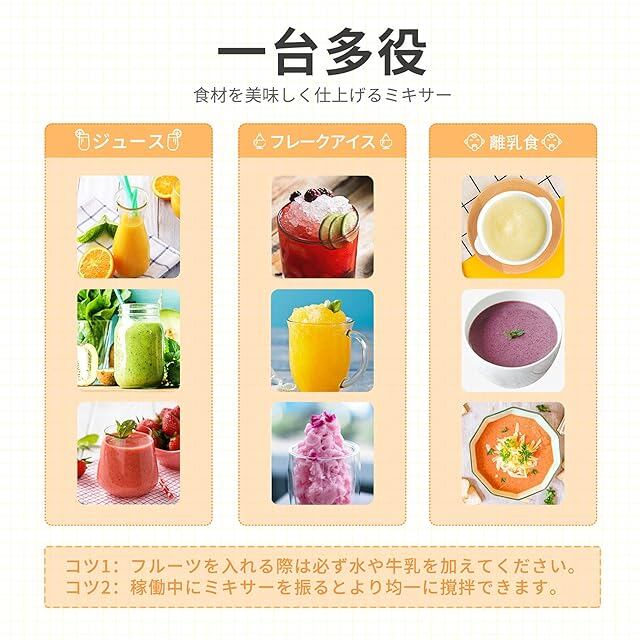 商品名:Angashion ジューサー ミキサー 野菜 果物 ジュース 離乳食用 栄養補充 氷 一台多役 2つコップ 350ML/500ML 4000mAh 22000回転バッテリー 持ち運び 磁気誘導型安全機能 USB充電式 USB出力 アウトドア 旅行 出張 オフィス 日本語取扱説明書