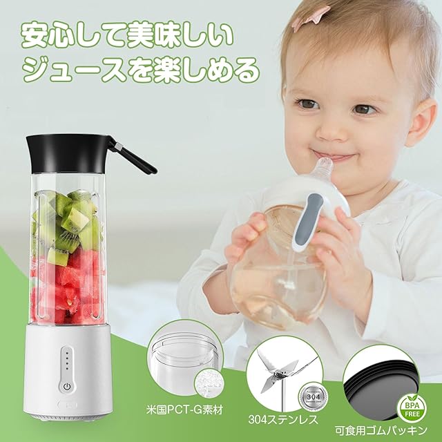 商品名:Besecou ミキサー ジューサー 【米国PCT-G素材+304ステンレス】ジュース 500ml 野菜 果物 ハンドミキサー フルーツ スムージー 離乳食用 栄養補充 お手入れ簡単 防水 4000mAh USB充電式 コードレス 小型 コンパクト軽量 持ち運び 誤操作防止 アウトドア キャンプ オフィス ダイエット 日本語取扱説明書 ホワイト