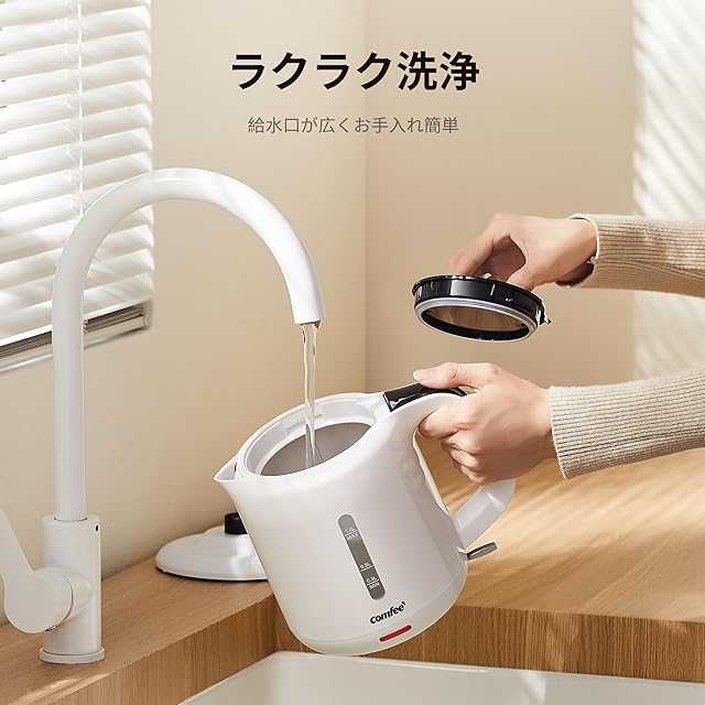 商品名:COMFEE' 電気ケトル 1.0L カンタン 急速沸騰 空焚き防止 沸騰自動OFF機能付き お手入れ簡単 コンパクト シンプル 一人暮らしに最適 ホワイト MK-08D03A