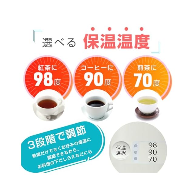 保温温度が選べる「98℃、90℃、70℃の3段階」