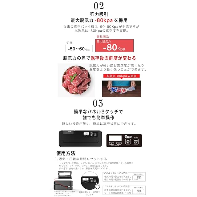 商品名:シーリス 真空パック機 専用袋不要 業務用 家庭用 -80Kpa 真空パック器 フードシーラー