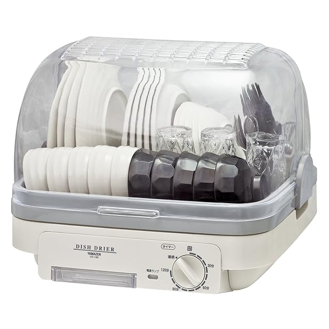 [山善] 食器乾燥器 大容量 (5人分) 120分 タイマー付き ライトグレー (自然対流式) (抗菌/防カビ) 小型 工事不要 YD-180(LH)