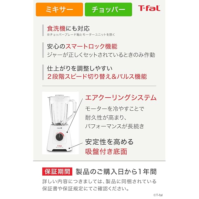 ティファール ミキサー 1,250mL 大容量 350W ハイパワー チョッパー付き 「ブレンドフォース ネオ パウエリックス マルチ」 スムージー BL42X1JP