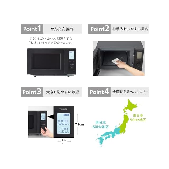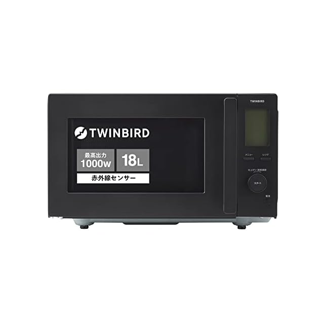 TWINBIRD(ツインバード) 電子レンジ フラットテーブル 一人暮らし 単機能 18L 1000W 赤外線センサー 高出力 簡単操作 シンプル ブラック DR-F282B