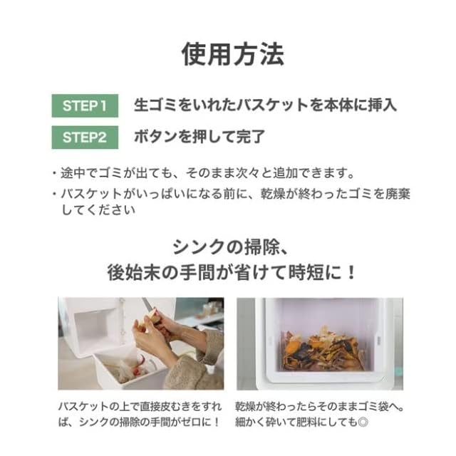 卓上ごみ箱1個分のサイズで、生ごみをパリパリに乾燥77%減! 重い、臭う、虫の発生などあらゆるストレスから解放します!