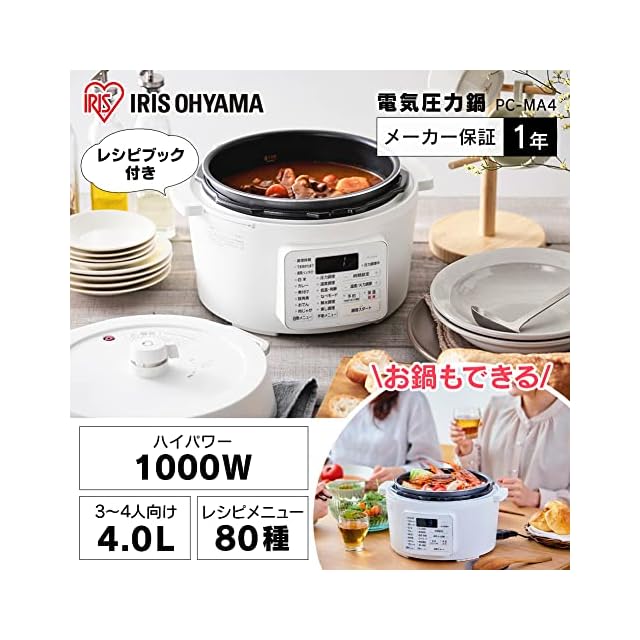アイリスオーヤマ(IRIS OHYAMA) 電気圧力鍋 4.0L ホワイト PC-MA4-W