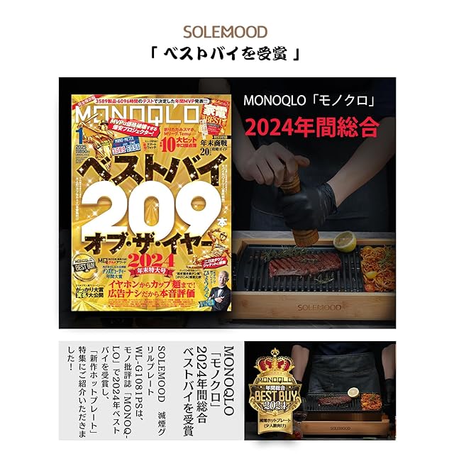 SOLEMOOD ホットプレート 焼肉プレート 1200W 高火力 減煙 油減らし 加熱迅速 無階段調節 「美味しく焼ける秘訣」コンパクトプレート 一人暮らし 二人暮らし グリル鍋 魚焼き 焼き鳥 洗いやすい 油受け皿付き 竹製 木目調 高級 おしゃれ ギフト