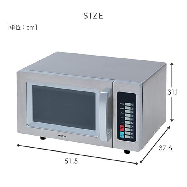 【商品仕様】◇本体サイズ:幅51.5×奥行37.6×高さ31.1cm ◇庫内有効寸法:幅30.9×奥行33.8×高さ20cm ◇ 商品重量:11.5kg ◇定格電圧:AC100V(50/60Hz) ◇消費電力:1400W ◇発振周波数:2450MHz ◇高周波出力:850W/700W/600W/500W/200W相当 ◇電源コードの長さ:1.5m ◇期間:お買い上げ日より1年間(の範囲については書に記載がある無料修理規定をご確認ください)