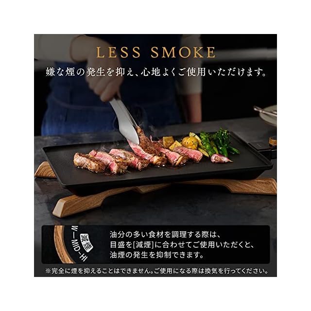 アイリスオーヤマ(IRIS OHYAMA) 薄型ホットプレート ブラック 丸洗い可能 温度調節機能付き 薄型 ホットプレート 焼肉 煙が出にくい 減煙 IHU-A10-B