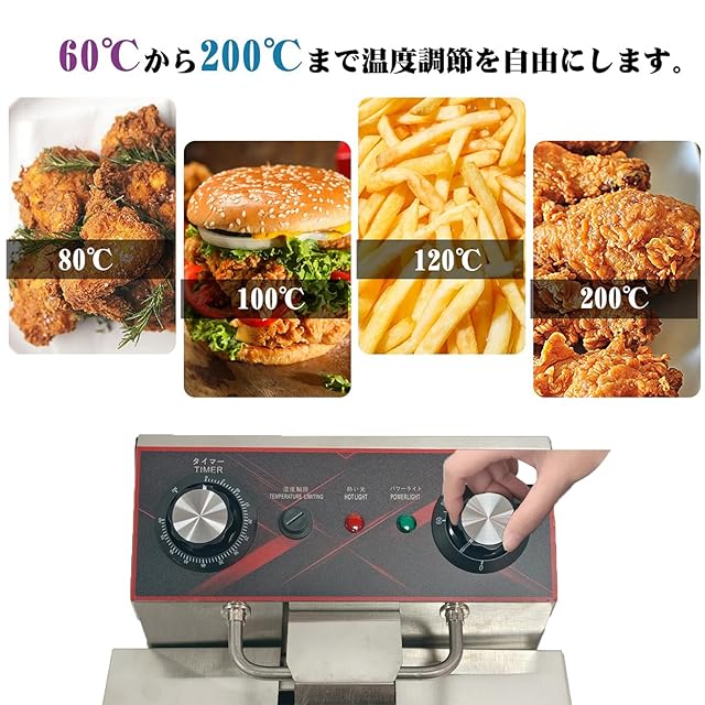 商品名:電気フライヤー 家庭用 ステンレス製 10L 大容量 温度調節 タイマー付き 業務用も可 揚げ物 天ぷら 日本語説明書付き
