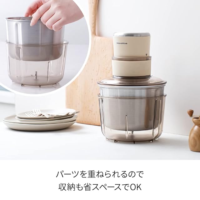 ✅【コンパクトに収納できる】ボウルやアタッチメントなどのパーツを重ねられるので、収納も省スペースでOK。狭いキッチンでも置き場所に悩みません。