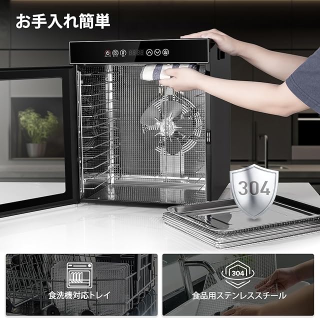 ༄【おしゃれデザイン】KWASYO 12段フードドライヤーはブラックステンレス鋼製で、高品位なガラスドを採用しているから、よりスタイリッシュでキッチンがすっきりに見えます。