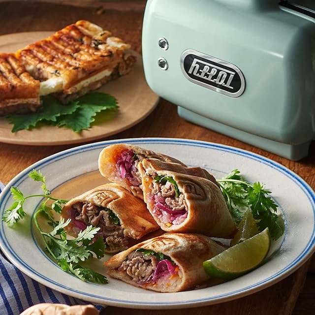 【ちょうどいい食べきりサイズの“ハーフホットサンド”】 一枚の食パンを折りたたんで作るハーフホットサンドは、カロリー控えめでヘルシーな食べ切りサイズ。 普通のホットサンドの半分サイズなので、スナック感覚でぴったりな分量を楽しめます。 ※対応食パンサイズ:8~12枚切り。
