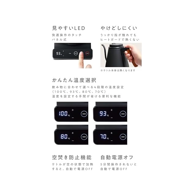 ✅【いつでも最適な温度で】コーヒーやお茶の味と香りの決め手となるお湯の温度を、繊細にコントロール可能です。50℃~100℃まで、引き出したい味や香り、用途に合わせて1℃刻みで設定できる温度調節機能。設定温度に達したら、ブザーでお知らせします。