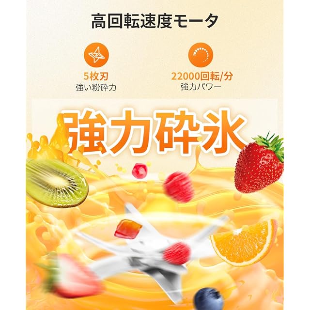 【精密カッター・立体ブレード】最新開発の立体ブレード5枚を用いており、攪拌がより強く、変形しにくく錆びにくいです。ジューサーも180W大出力モータを搭載しており、最大22000回/分の回転数で、食材を素早くカットすることができ、氷でも急速に粉砕することができ、わずか25秒でフレッシュなジュースを作ることができます!