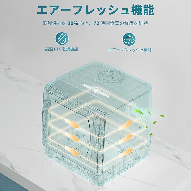 【5つの洗浄コース+2つの機能】「標準」「スピード」「省工ネウ」「ベビー用品」「せいせん」の5コースで、あらゆる洗い物に対応します。さらに「温風乾燥」(60分延長可能)と「換気保管」(72時間)の2機能で、食器を清潔で衛生的な状態に保ち、いつでもすぐ使える準備を整えます。