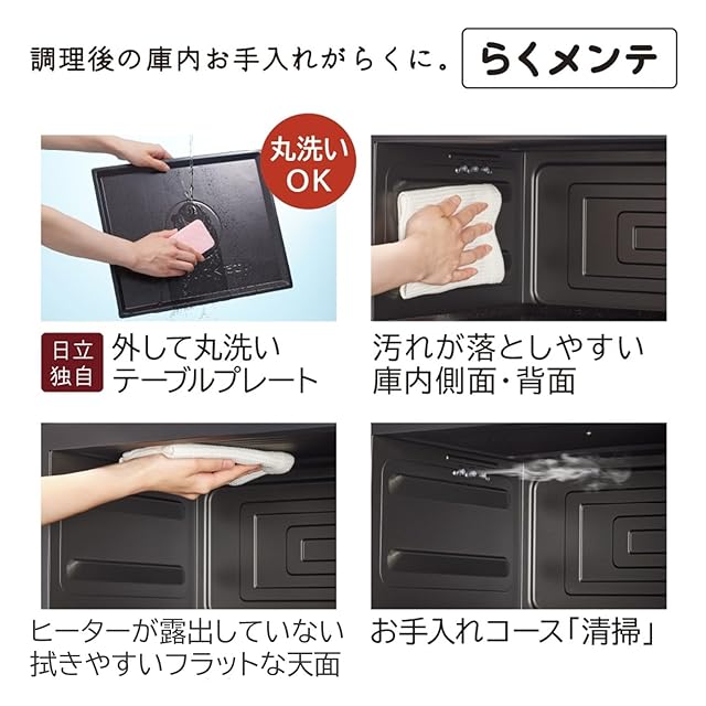 汚れを落としやすいシリコン系塗装の庫内側面・背面や平面グリルなど、調理後のお手入れがらくに。「らくメンテ」