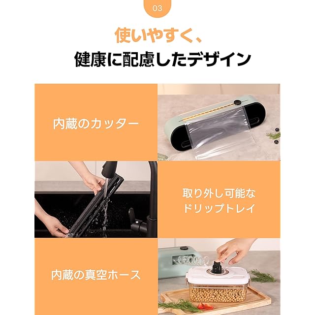 【幅広い用途】日常の食品保存だけでなく、ペットフードや石鹸、宝飾品などの真空シールにも利用できます。この多機能フードシーラーは、さまざまな用途に応じて幅広くお使いいただけます。