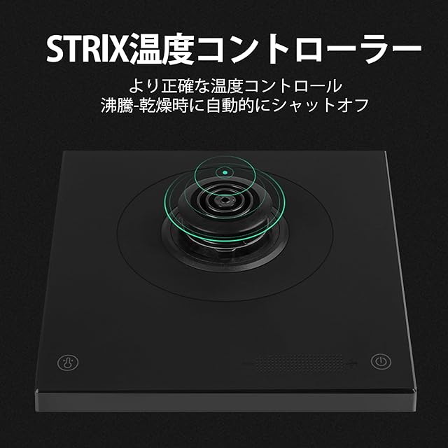 【温度調節】内蔵のSTRIXコントローラーの精度は1℃に達し、40~100℃の範囲で任意の目標温度に調節できます。HOLDモードでは、実際の水温が低い場合、目標温度まで自動加熱します。デュアルデータ表示、リアルタイムで実際の温度と目標温度を表示することができます。プロのように淹れる