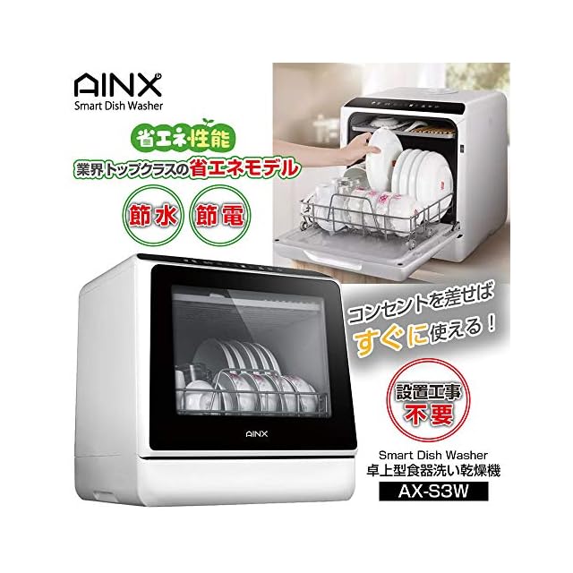 商品名:アイネクス AINX 工事がいらない 食器洗い乾燥機 AX-S3W ホワイト