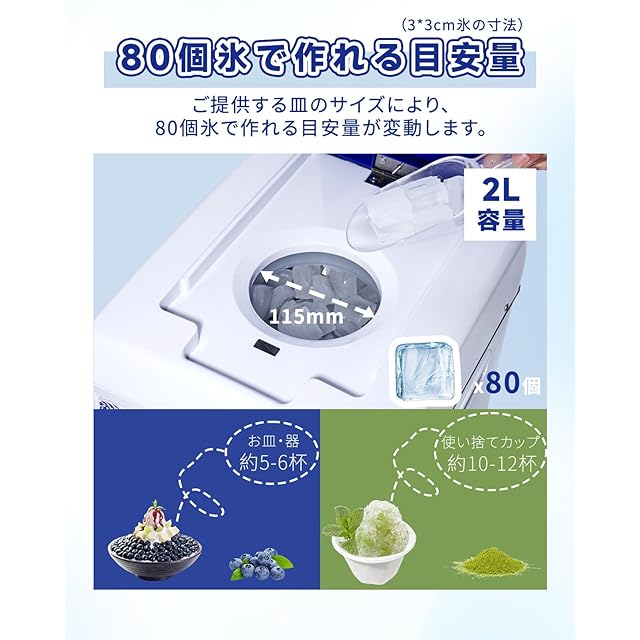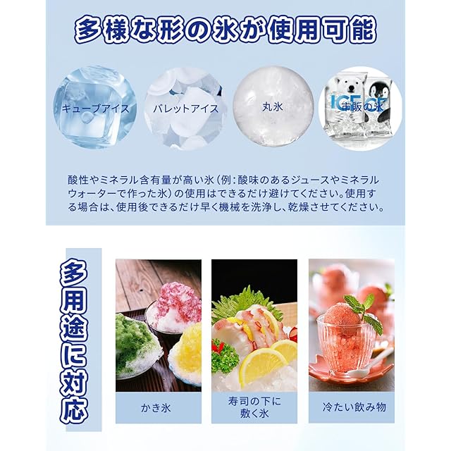 【多形状氷対応&2L大容量】角氷・丸氷・バレット氷など市販の氷をそのまま使用可能。1回最大2L(3*3cmサイズで約80個)処理で、連続作業もストレスフリー。