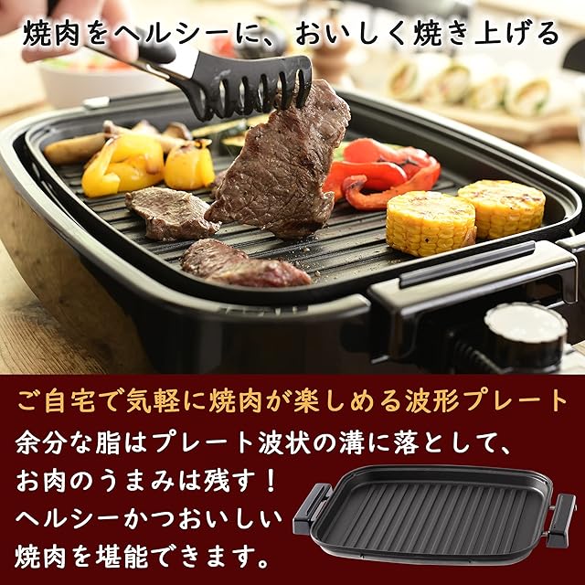 【仕様】本体サイズ:幅42.5×奥行33×高さ17cm、本体重量(ふた含む):2.4kg(平面プレート時)/2.5kg(波型・たこやきプレート時)