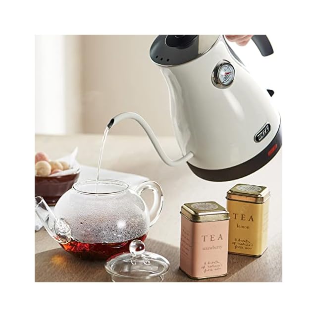 【Toffy/トフィー】 温度計付き電気ケトル K-KT3 適温 コーヒードリップ ハンドドリップ 空焚き防止 グースネック注ぎ口 レトロ K-KT3-AW アッシュホワイト