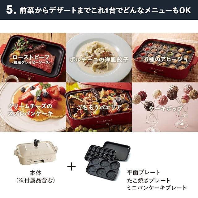 基本セットの平面プレート・たこ焼きプレートに加え、ミニパンケーキが焼けるマルチプレート付き。