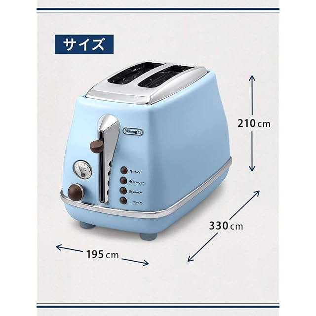 De'Longhi (デロンギ) ポップアップトースター アイコナ・ヴィンテージ CTOV2003J-AZ トースト 食パン 片面焼き可能 4~10枚切り 焼き目調整6段階 埃よけカバー付属 簡単お手入れ [アズーロブルー] デロンギファミリー登録で3年