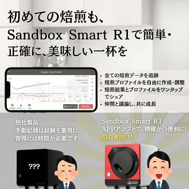 商品名:Sandbox Smart コーヒー焙煎機 R1直火式加熱 スマホアプリ操作対応 自家焙煎コーヒー 100g〜150g対応 プロファイル保存機能付き レッド