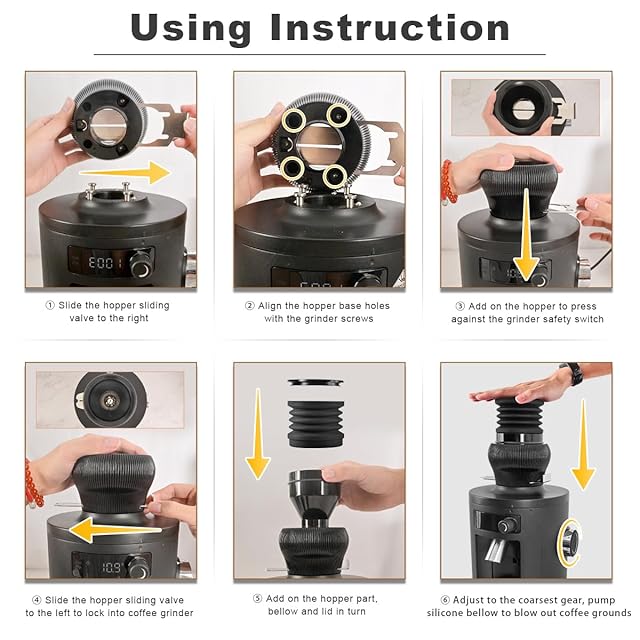 ✅梱包リスト - アルミニウム蓋 x 1、シリコンベロー x 1、クリアビーンホッパー x 1、ギフト:コーヒークリーニングブラシ x 1。