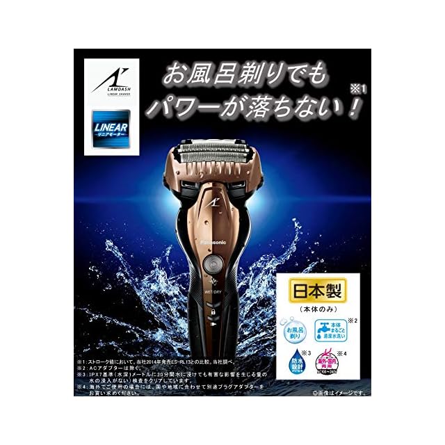 お風呂剃りでもパワーが落ちない「高速リニアモーター駆動」(ストローク値において。パナソニック2014年発売ES-RL13との比較。パナソニック調べ。)
