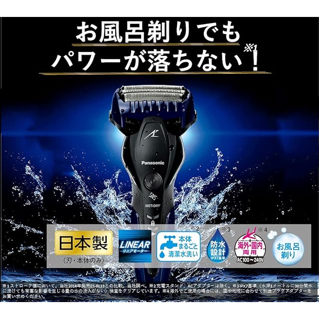 ●お風呂剃りでもパワーが落ちない「高速リニアモーター」駆動(※ストローク値において。当社2018年発売ES-RL15との比較。当社調べ。)