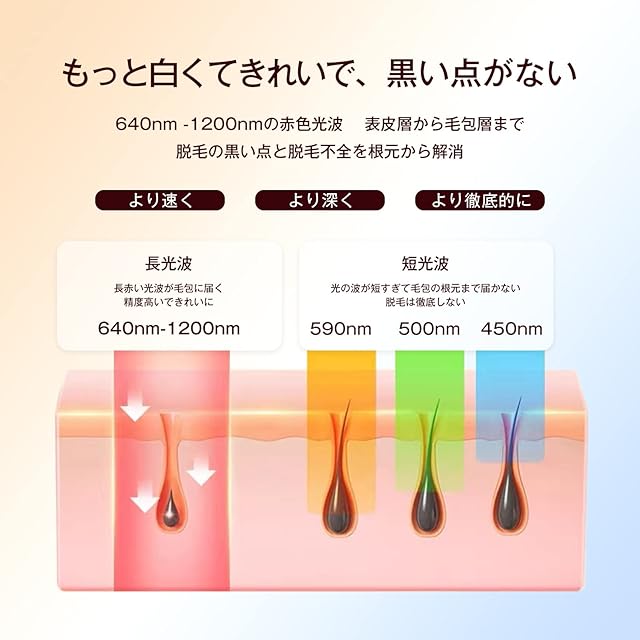 【おうちで簡単フラッシュ脱毛】サファイア冷感技術を搭載した本製品は、ムダ毛の成長を抑え、なめらかな素肌を目指す方をサポートします。サロンに通うことなく、ご自宅で好きなタイミングでお手入れでき、ムダ毛の悩みから解放され、自信に満ちた毎日をお過ごしいただけます。継続使用することで、つるつるの肌へと導きます。