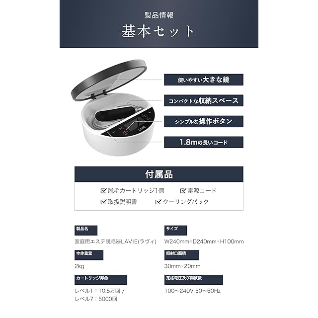 LAVIE(ラヴィ)脱毛器 VIO対応 IPL 光エステ メンズ レディース 7段階調節 だつもうき LVA600(基本セット/全身)【日本製 2年 男女兼用】