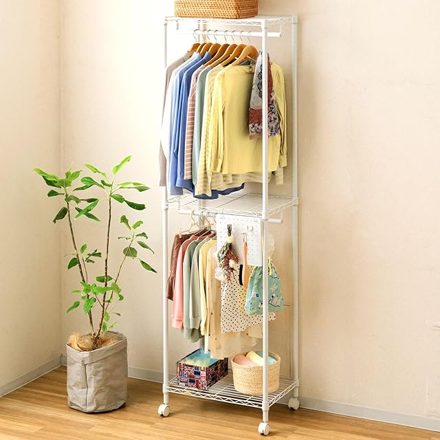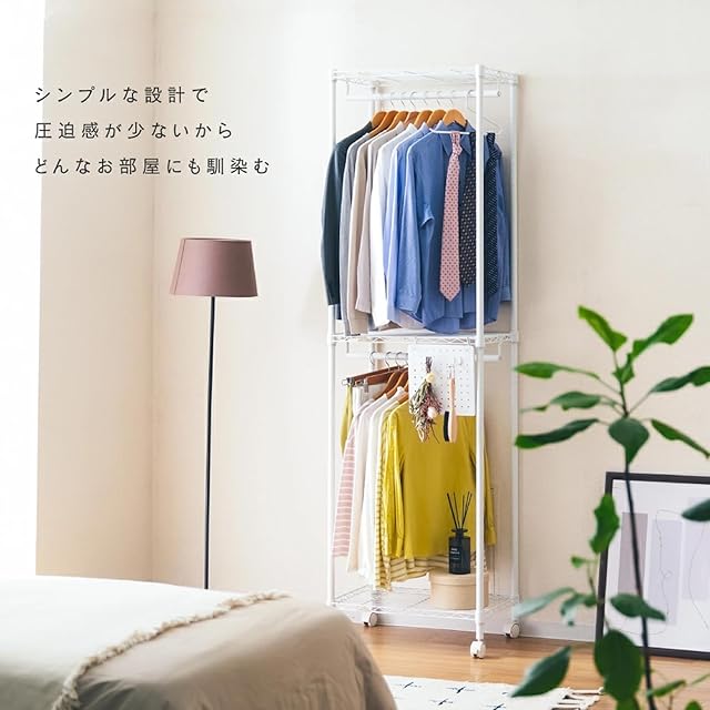 ドウシシャ ルミナス 2段ワードローブ ホワイト EHL2WD-60 幅61×奥行41×高さ209cm ルミナスラテ0 大容量でスッキリ衣類収納 スチールラック ハンガーラック 幅60