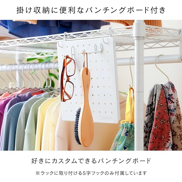セット内容:棚板×3、ハンガーポール×2、ポール(3分割)×4、アジャスター×4、キャスター×4、パンチングボード×1、スリーブ(取付部品)×12、取扱い説明書