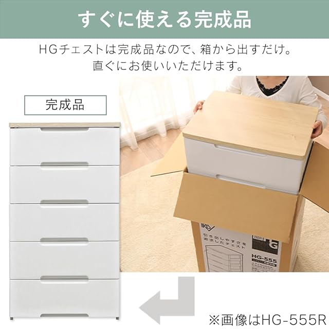 アイリスオーヤマ チェスト 5段 届いてすぐ使える完成品 ラクラク引出し 木天板 幅32.4×奥行41×高さ100cm ホワイト / ナチュラル 白 プラスチック HG-325R 組立不要