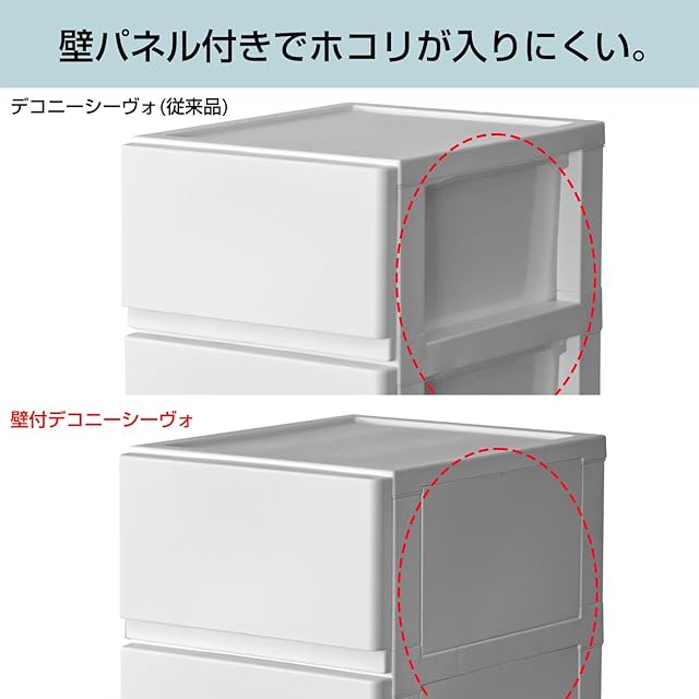 マットな質感とシックな色味がインテリアになじむシンプルなチェスト。外枠の側面・背面が壁付きで ホコリが入りにくい仕様に。リビングはもちろん、クローゼットや押し入れ内の整理収納にも便利。
