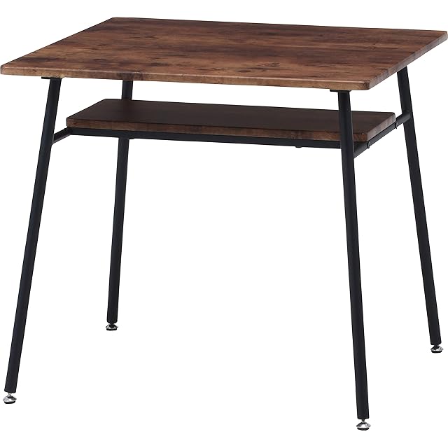 不二貿易 ダイニングテーブル テーブル 1人用 2人用 一人暮らし 単身 ヴィンテージ風 木目調 収納棚付き アジャスター付き 角が丸い 幅75×奥行75×高さ70cm ブラウン 単品 ナビア 14659