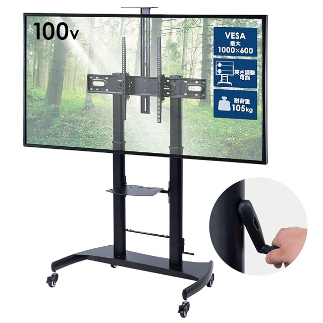 ★総耐荷重:105kg(※テレビは100kgまで) ★VESA対応:200x200、200×300、300x200、300x300、400x200、400x300、400x400、500×200、500×400、600×200、600x400、600×600、800×300、800×400、800×600、1000×300、1000×400、1000×600mm 【ご注意】※テレビにより、対応可否がございます。必ず対応のご確認をお願いします。★弊社対応表はこちらをご確認ください→https://www.esupply.co.jp/ItemPage/EEX-TVS015
