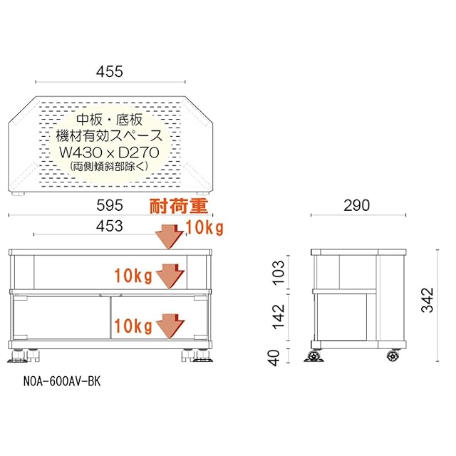 朝日木材加工 テレビ台 Nook 26型 幅59cm ブラック キャスター付き コーナー対応 NOA-600AV-BK