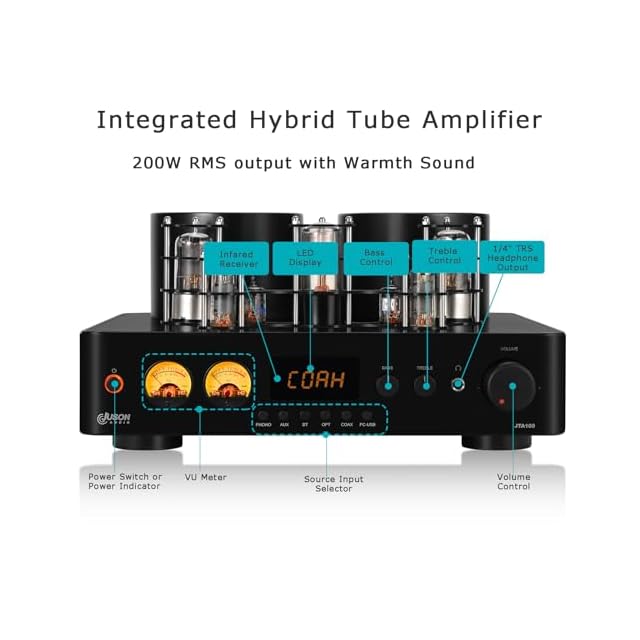 Juson Audio JTA100 200W真空管増幅器集積BT 5.0 AUX RCA PHONO入力とヘッドホン出力2.1 CH ABクラスHIFIホームオーディオターンテーブル