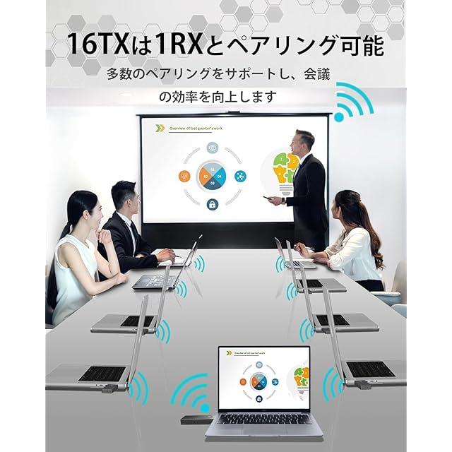 16 台のワイヤレス送信機を 1 台の受信機に同時に接続 : FAIRBEE 4KワイヤレスHDMIエクステンダーは、最大16台のワイヤレストランスミッターを1台のワイヤレスレシーバーに同時に接続できるという大きな利点があり、複数のソースから異なるディスプレイにコンテンツをストリーミングする柔軟性を提供します。複数の PC をテレビにワイヤレスで接続したり、複数のラップトップ/カメラをテレビ/プロジェクター/モニターにワイヤレスで接続したりできます。(注:追加のワイヤレストランスミッターは別途購入する必要があります)。