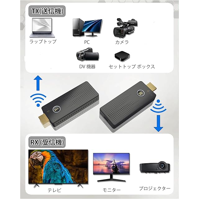 ワイヤレスHDMI 送受信機セット4K30Hz HDMI無線、16台同時接続対応、30m無線超低遅延、2.4G/5.8GHz双頻安定高速、Laptop/Camera/PC to TV/Monitor, Projector技適認証番号:R210-228497
